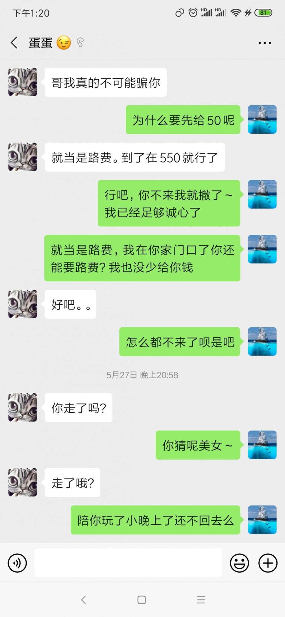 论坛上看到ly发出来的兼职,加了微信没联系,后来上个月有天晚上约上之后过去的,妹纸说上门先路费,我跟